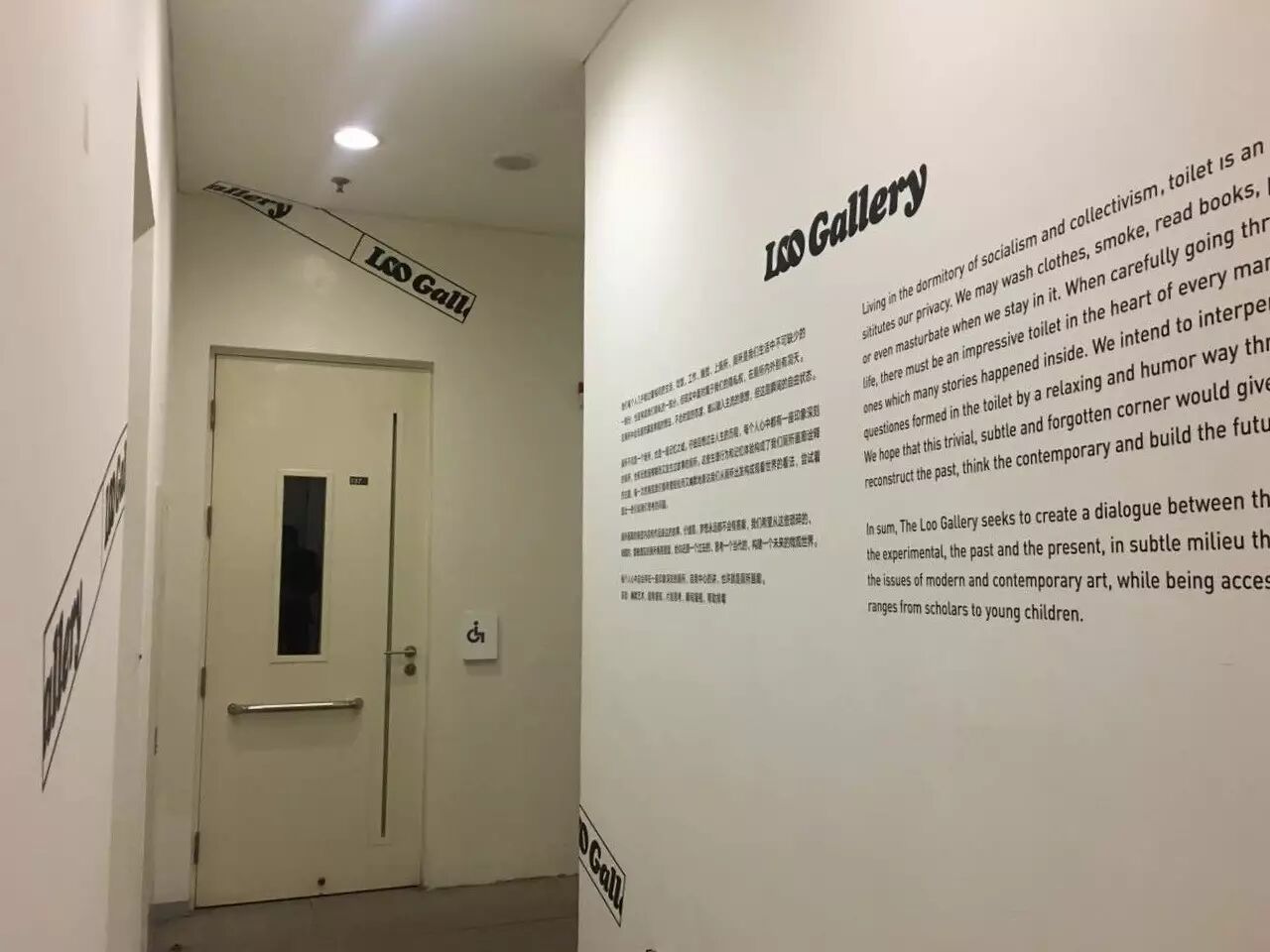 The Loo Gallery lives in an iconic site in Beijing---Toilet of Room 1002, Biulding 22, CAFA. With extraordinary exhibitions of modern and contemporary art, Loo Gallery is dedicated to the conversation between the private and the public, the personality and the generality. Our mission is helping you have fun with art, think for a moment, stare for a while and vent.