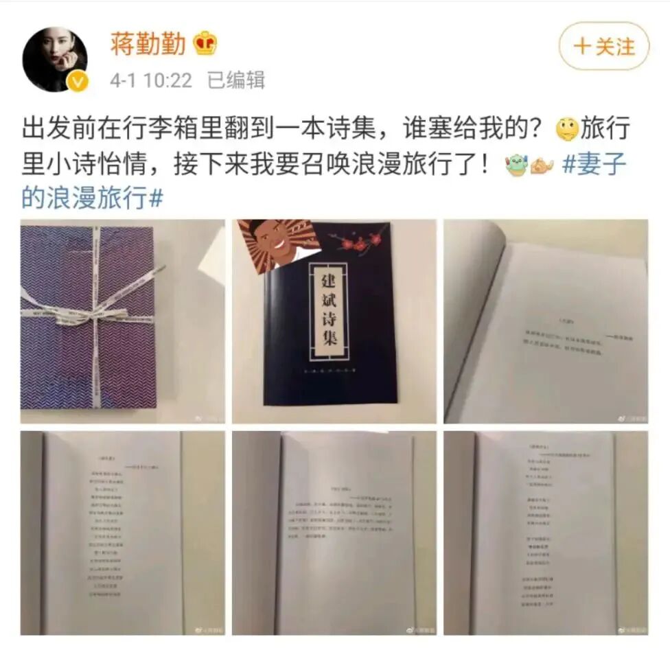 这些年来,陈建斌为蒋勤勤写下的诗已经多达几百首,甚至还被印成了他们之间专属的诗集。