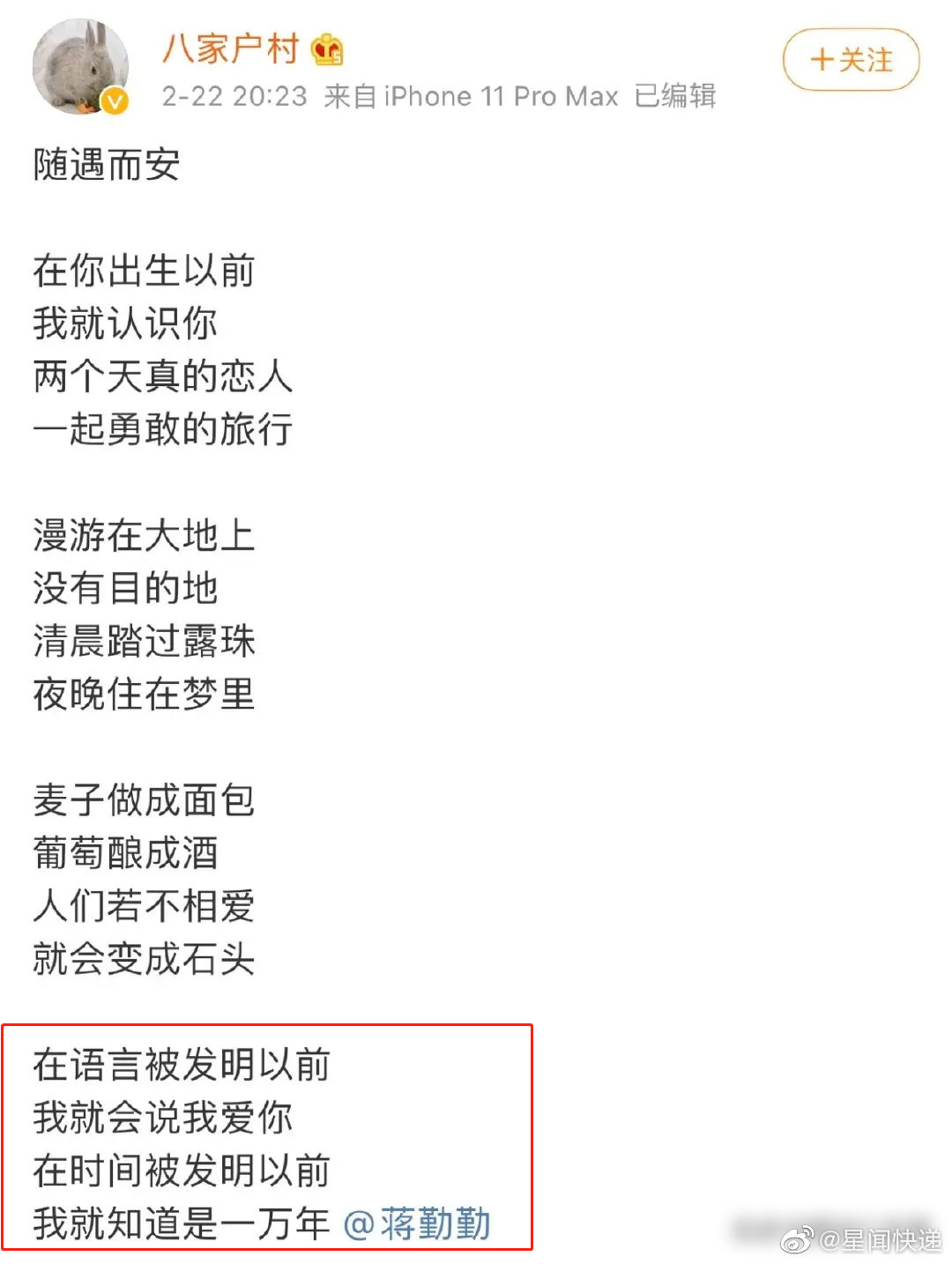他做的很多诗,最后的三个字,都是蒋勤勤: