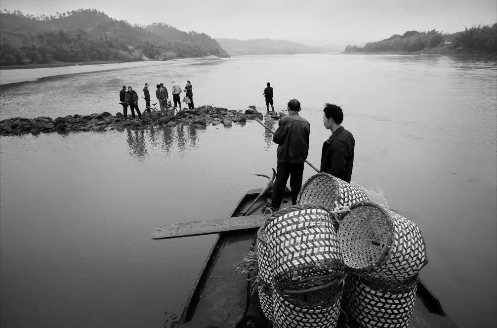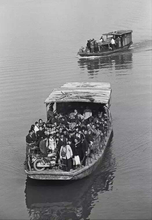 乡渡是赣南农村主要交通方式,每逢圩节渡船繁忙。2001年拍摄于赣县大湖江