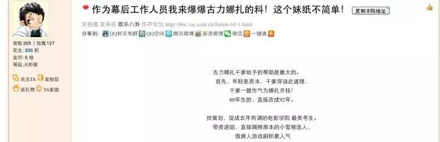 后来曾在《轩辕剑》剧组工作的某位网友爆料,称古力娜扎的的确确是1988年出生的,并且是干爹作假并策划所谓的北影最佳考生。