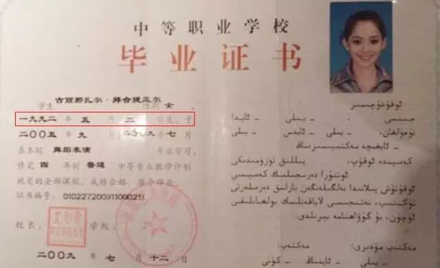 最后,有网友扒出古力娜扎比新版《还珠格格》的“香妃”麦迪娜(1988年生)晚一年考新疆歌舞团,仅仅比她小一届,不可能是1992年生。随后古力娜扎晒出毕业照以示清白。