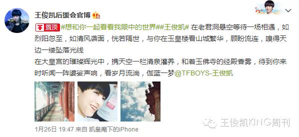 思索许久,我喜欢王俊凯,大概是因为除了欣赏他独特的嗓音和近乎完美的容颜以外,还有他喜欢分享的习惯。