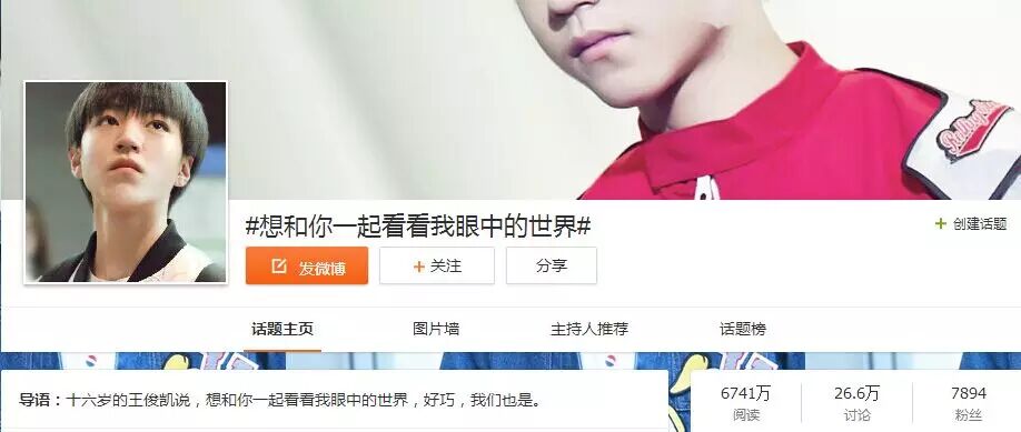 由王俊凯微吧发起的微博话题#想和你一起看看我眼中的世界#已斩获过6000万的阅读量,今晚,我想和你分享一下我眼中的王俊凯。
