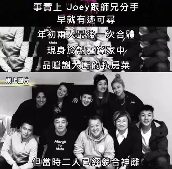 报道称两人在去年底开始酝酿分手,今年初,他们最后一次合体现身是到谢霆锋家中,品尝谢大厨的私房菜,当时已经貌合神离。