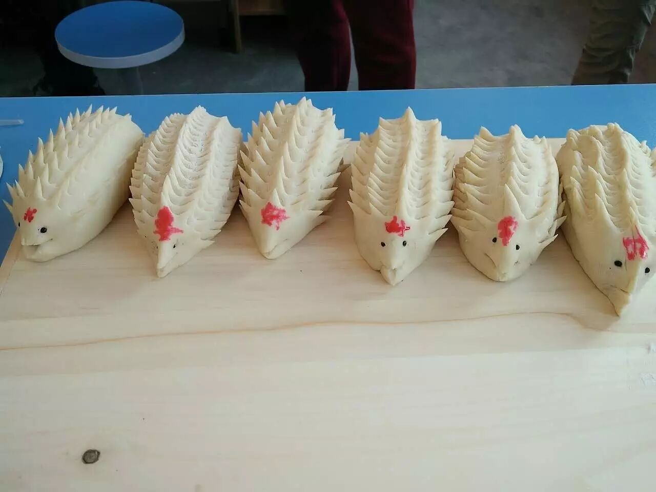 率先制作好大饽饽的张亮,还四处溜达,跟同学交流,并且协助同学们一起制作出了“刺猬家族”。