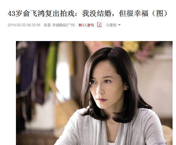 她爱读书,大学同学王茜看到她在看《伊梅尔达马科斯自传》,说“婚姻就是一场赌注” 俞飞鸿看的这本书是菲律宾女政治家伊梅尔达·马科斯的自传,他的丈夫是菲律宾总统费迪南德·马科斯,两个人的搭配有点像《纸牌屋》,大学少女不看情情爱爱文艺矫情而选择看这种书,她的内心世界可想而知。 亦舒曾说过看书的女人和不看的气质一下就能对比出来的,所以俞飞鸿在大三就被相中去好莱坞拍摄电影其实一点不让人惊讶。 作为唯一一个从中国去的演员,俞飞鸿与卢燕、邬君梅等老戏骨一起拍戏,在《喜福会》中饰演被花花大少精神凌虐后溺死自己孩子的莺莺阿姨,眉目间满是凄冷,你无法想象这是一个大三的少女拍出来的。 当时片子的制片和编剧问她愿不愿意留下来,但她想要完成学业,还是回国了。 1993年,俞飞鸿大学毕业,顺利留校任教。 也许一切太顺利对于年轻人来说是不会满足的,她觉得自己太年轻,需要锻炼,“我没有经验缺少生活,能教给学生的,只有老师教给我的那些,最多是做传话筒。加上想学英语,就去了美国留学。” 深造于美国加州大学分校。在美国两年,她的一切都是靠自己。 1998年,俞飞鸿又和机遇撞个满怀,电视剧《牵手》的导演杨阳找到电影学院的程老师,想邀请俞飞鸿出演女主角夏晓雪,那会儿她正在美国留学,坐十几个小时飞机回到国内后,她觉得自己当时的状态更适合第三者王纯的角色:年轻,不安定。 本来第三者的角色不会很讨喜,但她当时的演出却为观众所喜欢。 王纯这个角色让她一夜成名——那可能是中国荧屏上第一个不招人恨的第三者。 此后她似乎没能超越这个角色,观众说起她,必提及《牵手》里的王纯,到现在还是老男人们的梦中情人。 《牵手》红了之后,俞飞鸿片约大增,有一阵每年要拍四五部戏。 这其中有一部不得不提的就是《小李飞刀》,她在里面的惊鸿仙子的扮相迷倒众生,再成经典。 在《三少爷的剑》中,扮相也极好,就算大浓妆也遮不住她淡如菊的气质。 《策马啸西风》中的俞飞鸿与吴京 2004年,在电视剧《我爱你,再见》中,俞飞鸿第一次尝试幕后台前一肩挑的作品,为此她筹备了一年多,兼任制片人、出品人、主演、片尾曲演唱多职。 在片中与黄觉的表现可圈可点。 俞飞鸿人生中唯一一次能让外人觉得有欲望的事情应该是拍摄电影《爱有来生》。 这部电影改编自须兰的小说《银杏银杏》,据说俞飞鸿很早就特别喜欢这个故事,在10年间一直跟别人讲这个故事,最后王朔说:“既然你这么喜欢,不如自己拍。” 这个过程非常曲线救国:为了电影先成立影视公司,为了练手先拍电视剧,找了好几个编剧写剧本因为不是自己想要的只好自己写……之后就是做导演,拉投资,选拍摄地,选演员…… 做导演时事必躬亲,是个特龟毛以及自我要求严格的女导演。 不过即使一身懒散装束,片场男人气十足的她也是漂亮。 那时2009年,电影市场没有这么热,也没有人人都能一拍脑袋当导演的精神头。 俞飞鸿就是为了自己喜欢去折腾了一部电影,最后票房200万,但却在里面留下了她最凄厉决绝的样子。 万幸的是《爱有来生》是她自己演的,温婉的样子很美 凄厉决绝的样子也很美 俞飞鸿连素颜的导演工作照都美出了风格,于无声处听惊雷的那种。 这一年她38岁了。 心愿已完成,俞飞鸿继续与世无争了,然后就是好几年没有她的消息,偶尔客串也惊动不了娱乐圈,观众只是在看到她时感叹一句,这女的真美真有气质! 第一部导演作品票房惨败,虽然收获了不少业内好评,但总之是个亏本买卖。 人们等着她再拍一部证明自己,她却一股脑跑去欧洲旅行,还说自己总是做亏本的事情,说这话时没有自嘲,就是平淡地叙述事实。 现在她偶尔出来演电视剧,就会让人一惊:俞飞鸿还这么好看!! 客串《男人帮》,柔和的一面,气质那是更不用说。 演历史剧《东方战场》,扮演的是宋美龄 2013年演《大丈夫》,虽然是女二,但大家最爱看的就是她和杨玏的姐弟恋。