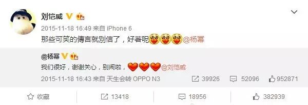 2015年11月份,某营销号影射杨幂与刘恺威离婚