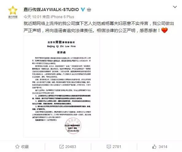 在刘恺威、杨幂、李易峰工作人员均作出否认后