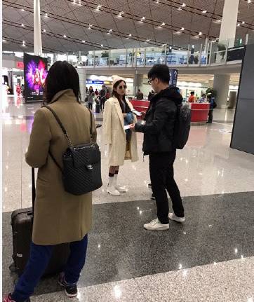 没有高大威猛的保镖陪同,也没有商务仓的VIP通道。随行人员只是一个小助理,没有一丁点明星架子。