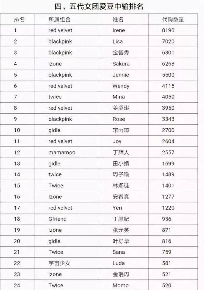 既然上榜了 BoF 时尚榜单,那么 Jisoo 的时尚势力究竟如何呢?一份网友整理的“四、五代女团爱豆同款代购数量排名”可见分晓,Jisoo 排名第三。