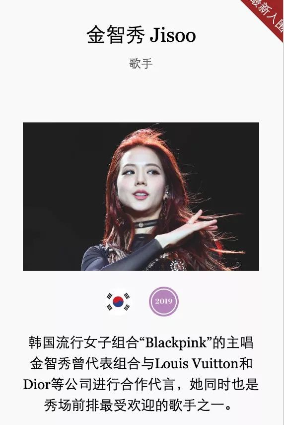 但是最让鹅娘意外的,是 BLACKPINK 成员金智秀(Kim Jisoo)的入选,这次入选的韩国歌手只有两位,Jisoo 就是其中之一,真是争气。