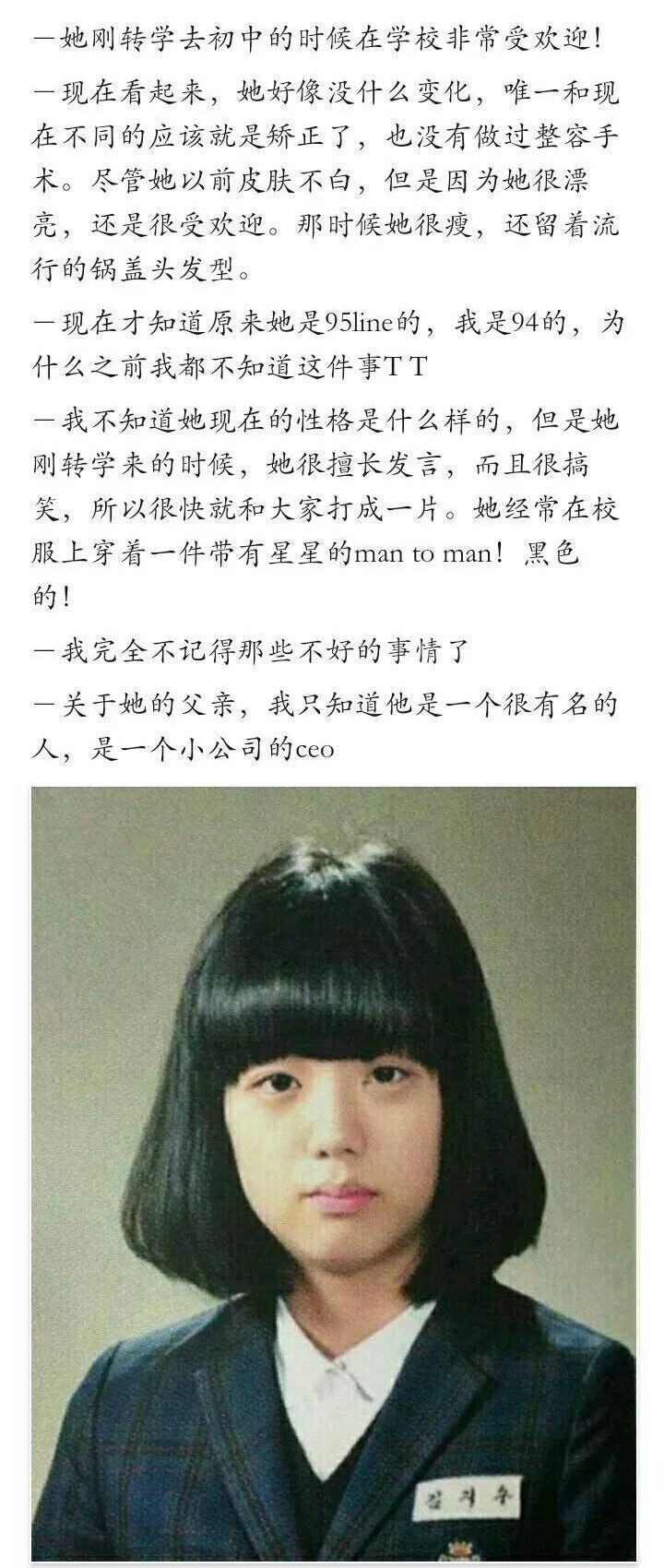 不仅如此,Jisoo 在同学中的口碑相当不错,知道她出道以后纷纷表示:这样善良、可爱的妹子值得更好的发展。