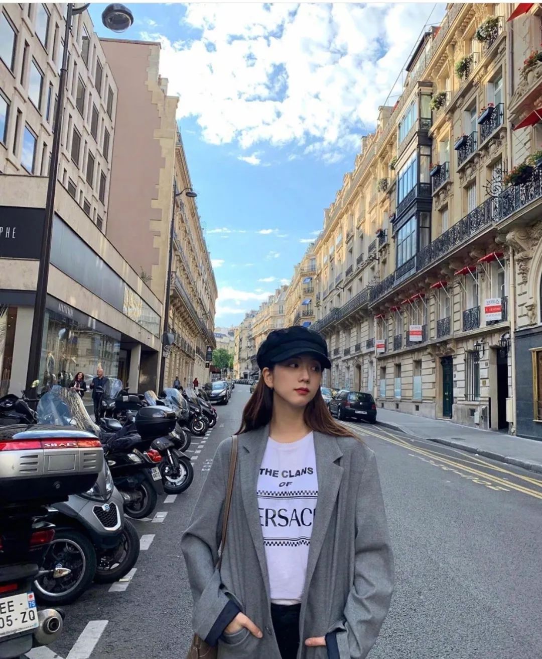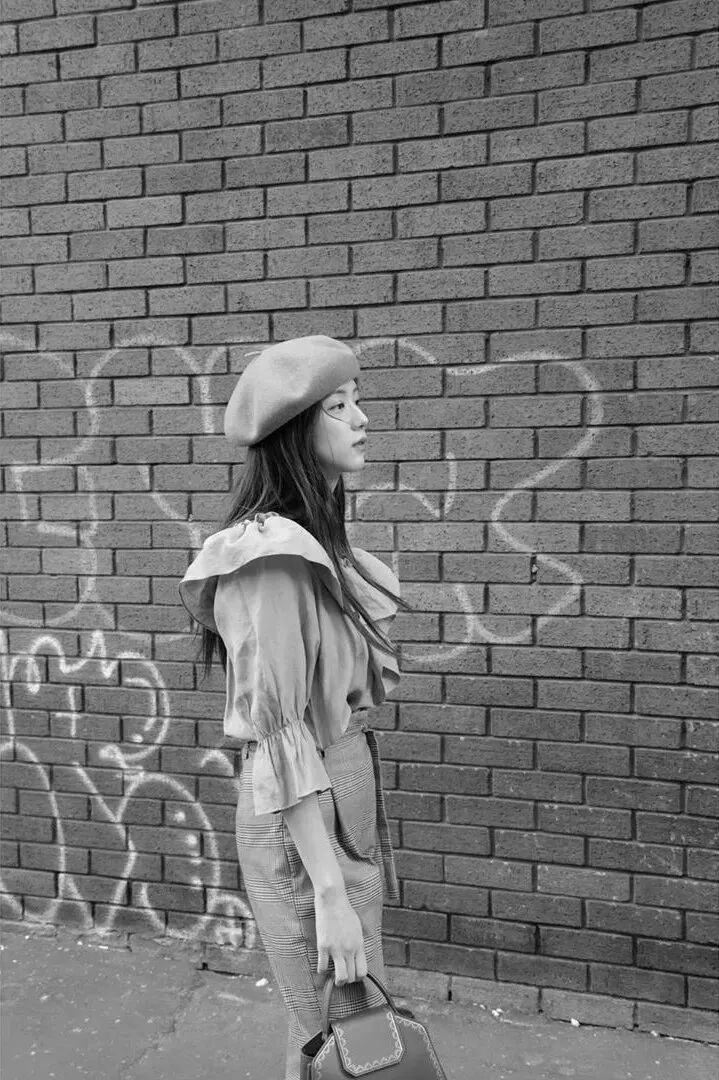 Jisoo 是贝雷帽的狂热爱好者。不管什么造型,扣上一顶贝雷帽在 Jisoo 的造型中都是成立的,淡淡的复古风分分钟就有。