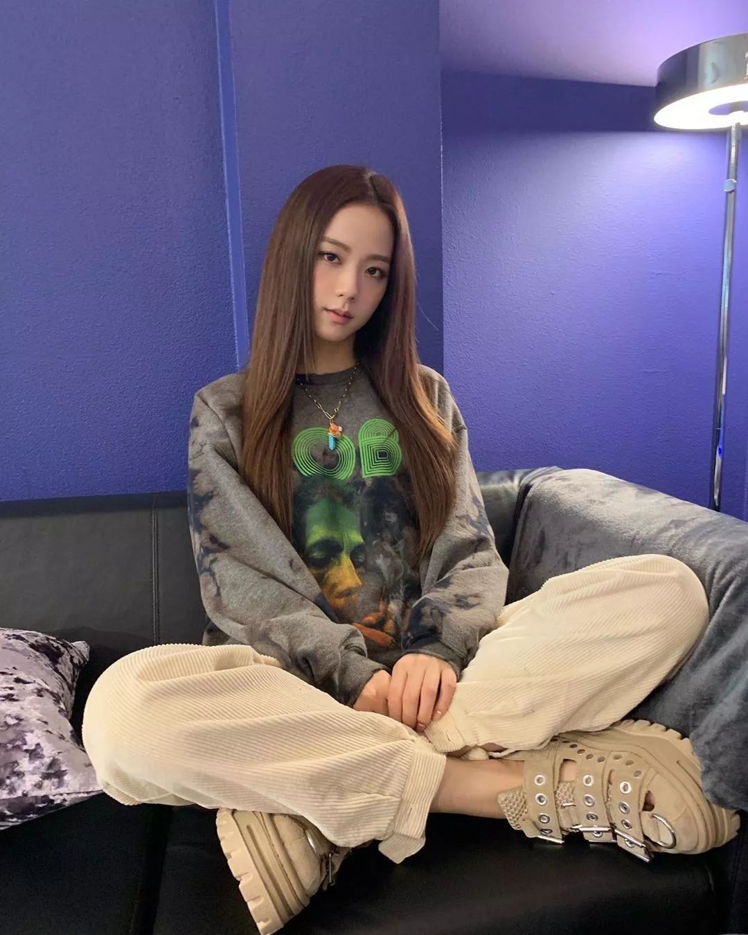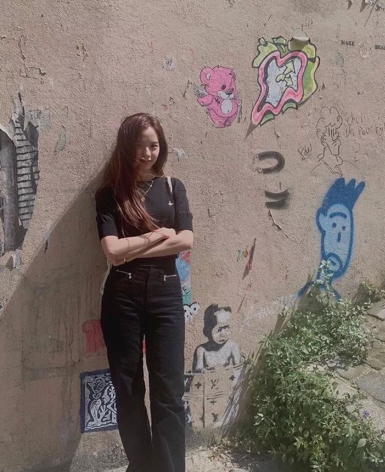 有些人穿基本款会有一种森系气质,但基本款在 Jisoo 身上总是能呈现出超 A 气场。