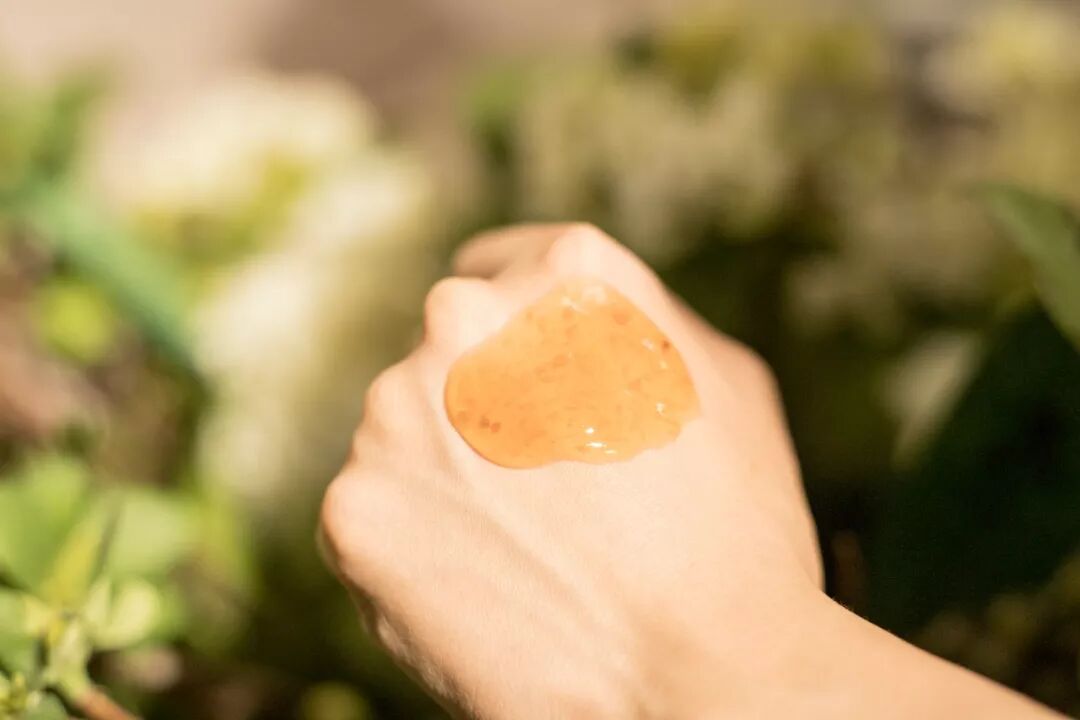 放到手上,可以看到清晰的玫瑰花瓣。面膜是清爽的啫喱质地,轻轻按摩在皮肤上,面膜一接触肌肤立刻就融化开了,水水的,肤感好奇妙。