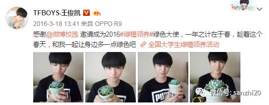 爱护地球人人有责,绿化环境从我做起, 王俊凯曾受邀成为绿色大使,呼吁小学生、中学生,乃至大学生栽种绿植,为地球绿化贡献出自己的力量!就听王俊凯的,领养绿植没有错!