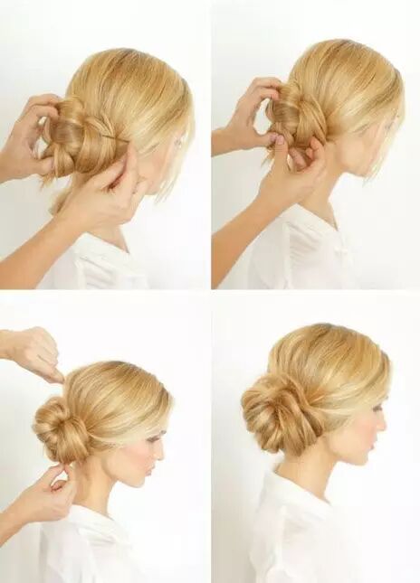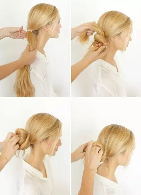 将头发拢起来,用橡皮筋在脖子后面绑一个球。如果你喜欢上面Jessica Alba那样的话,把发尾留在外面就好啦。如果你想扎整齐一点,就将发尾绕着橡皮筋卷一圈,固定,就完成啦!