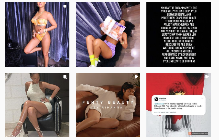 Robyn Rihanna Fenty是歌手、是演员,是时装设计师,是Business woman。从2005年签约Def Jam唱片公司,推出第一张专辑Music of the Sun后,每年一张专辑的速度让Rihanna的事业开始出现仿佛“失控性”地迅速蹿红。