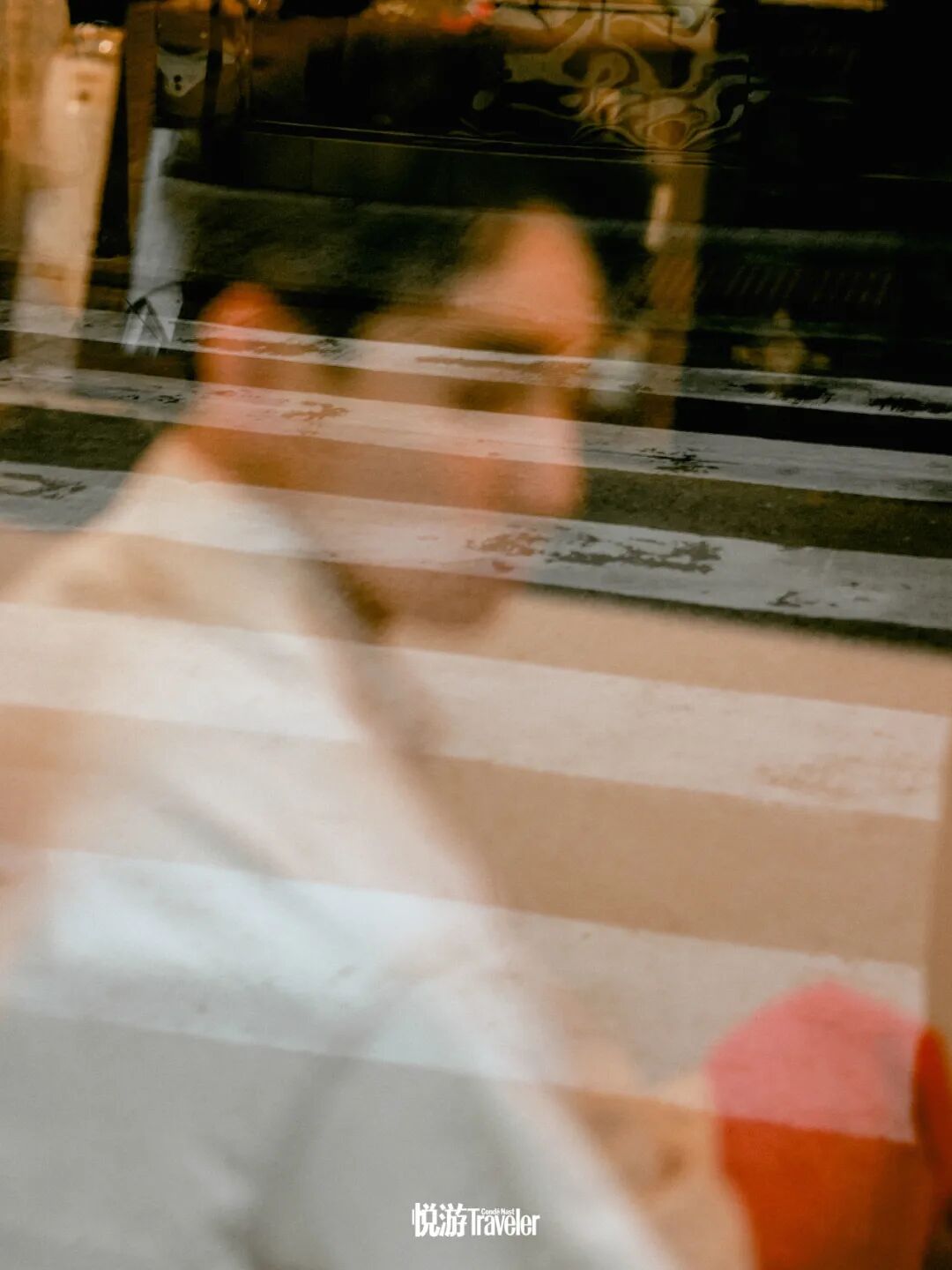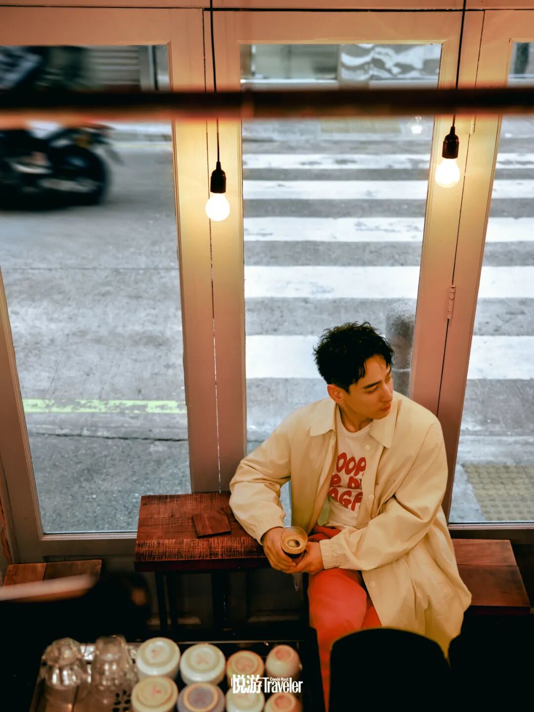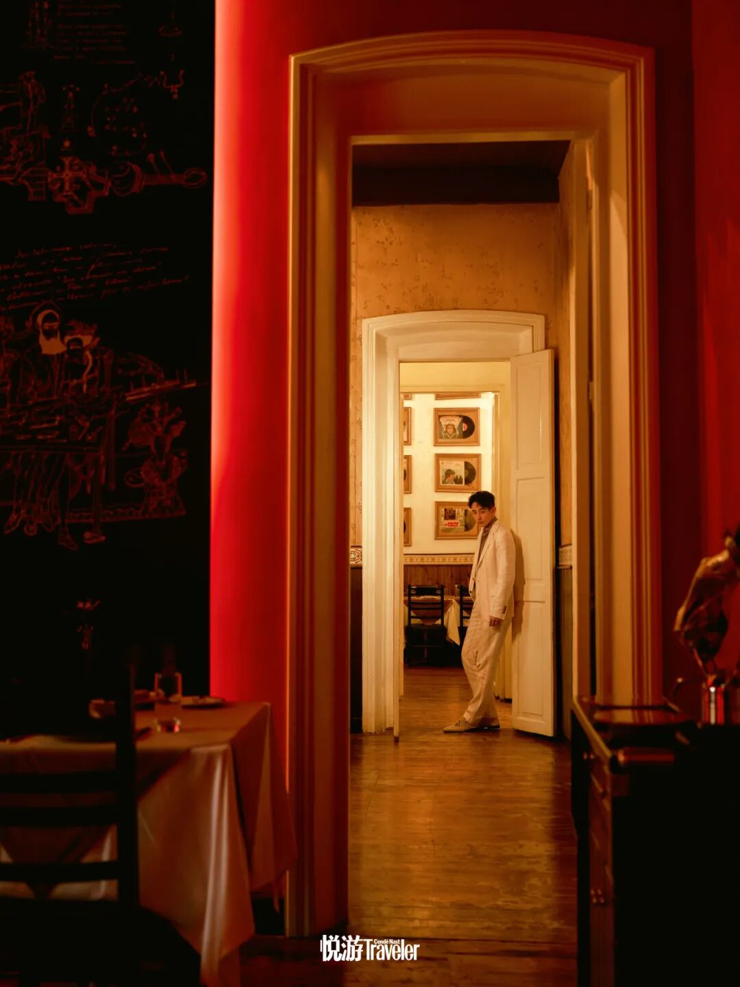 聊着天,任彬又吃了一口用来当道具的蛋挞,好像忘记了这里是拍摄现场。我们从岗顶前地出发,一路穿过望德堂区的历史建筑区域和疯堂斜巷,沿途是成片的葡式建筑,如今它们已经各自有了新的用途,是咖啡店,是创意店铺,是特色餐厅,老街的滋味越品越不同,像人一样。但无论进入哪座建筑,任彬总能立即找到自己的角色,而后与这里的环境融为一体。从他面对镜头,自在地随口吃下PASTEIS DE CHAVES里的葡式蛋挞的那一刻起,他已找到了自己的“真”,那便是“红尘滚滚多颜色,我自随遇而安”。