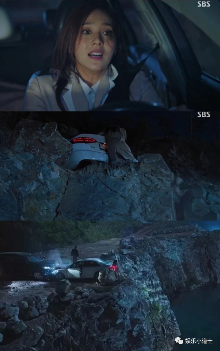 柳真飞车救金素妍的女儿,却被严基俊撞车逼到山崖边缘。翻摄SBS