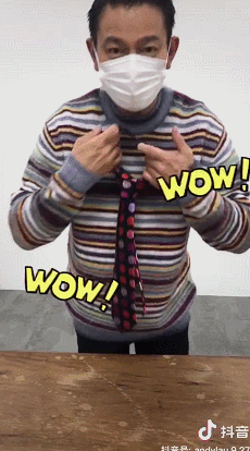也有鬼马的时候,认认真真摆个领带,只为教人怎么打领带,最后还忍不住笑了,很华氏幽默的感觉。