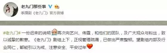 眼看一场粉丝手撕片方的大战就要开始,《老九门》剧组2月3日晚在官方微博发文解释了前因后果。