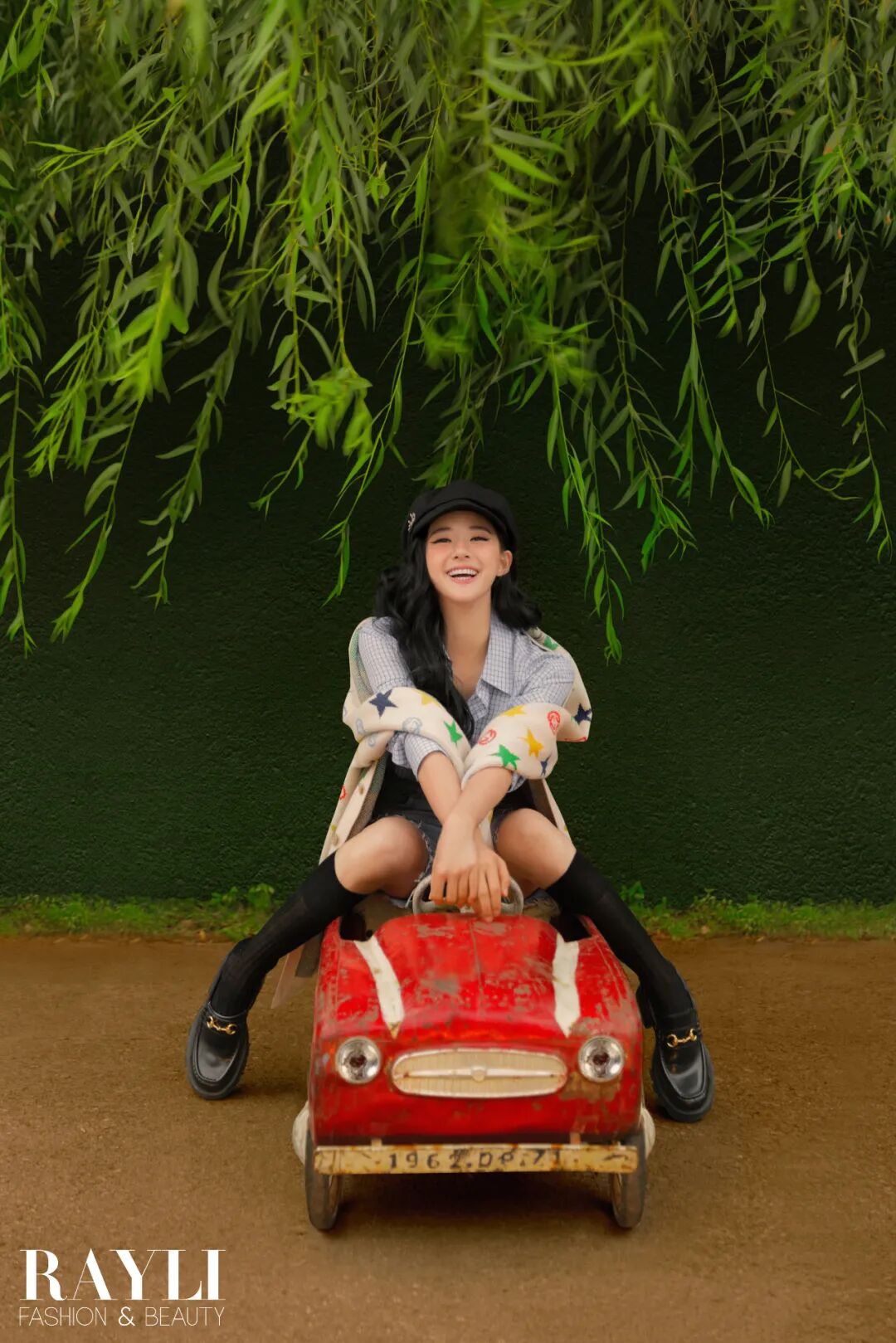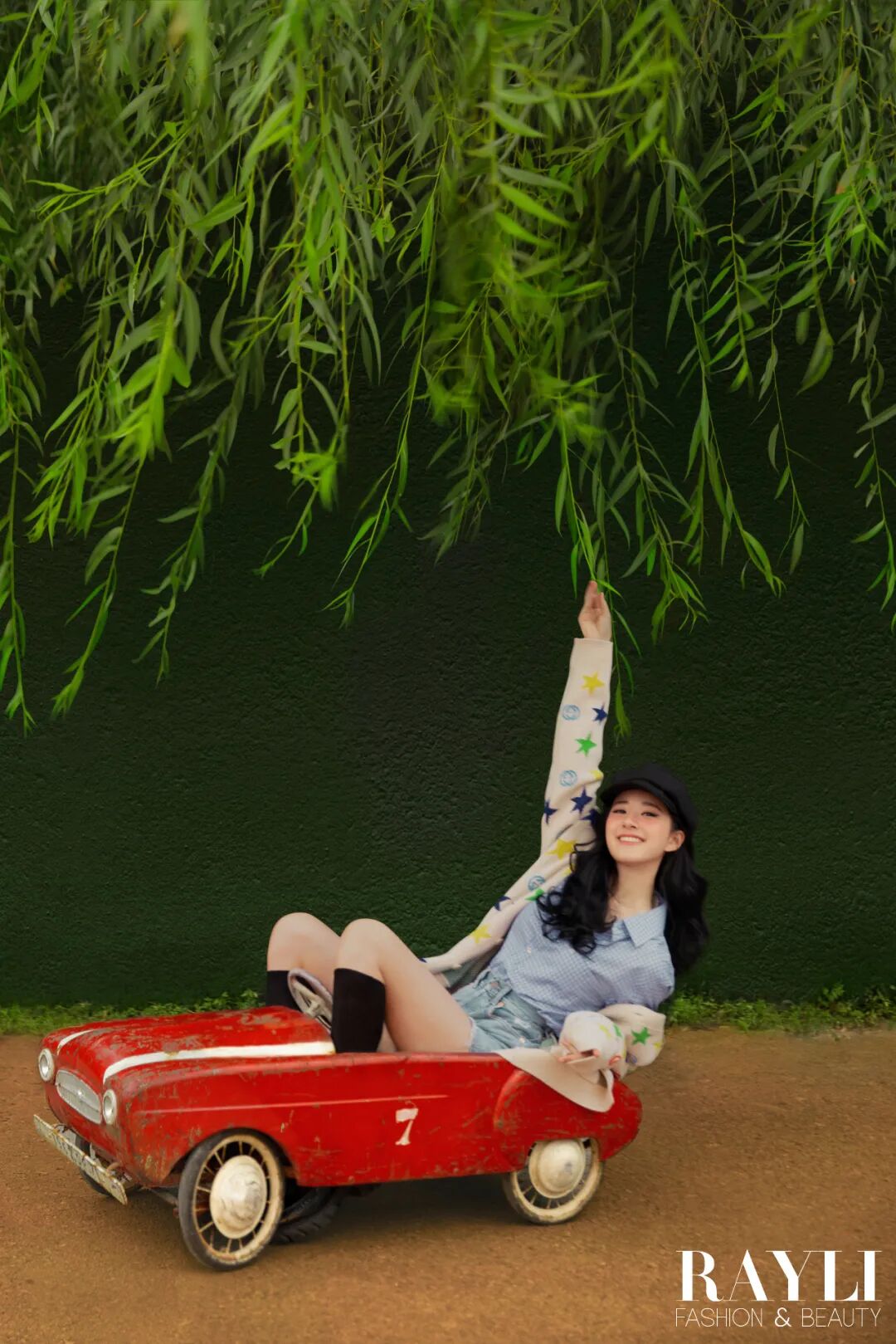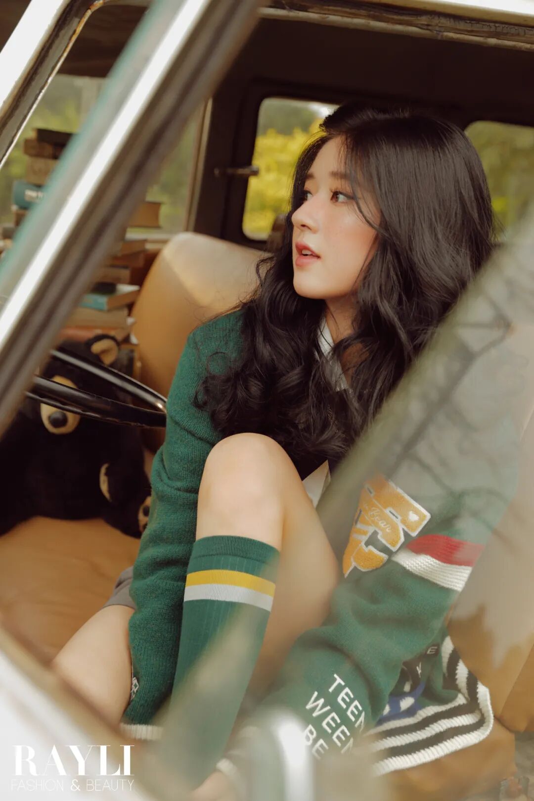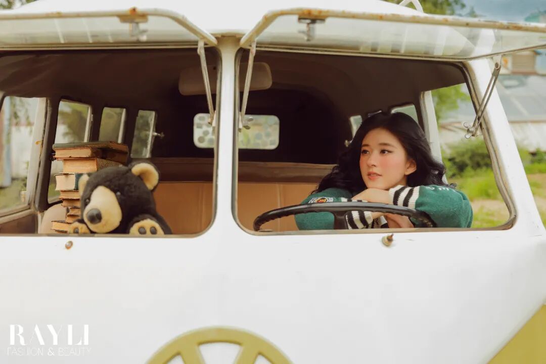 等一切调试完毕,所有人的焦点是一位娇小玲珑的女孩,她坐在开着车门的前座上,毛衣配短裤,学院风十足。她留着波浪长发,整张脸红扑扑的,看向窗外,不停变换着姿势,任由站在车外的摄影师按着快门。甜美又灵动,元气而百变,这就是赵露思。