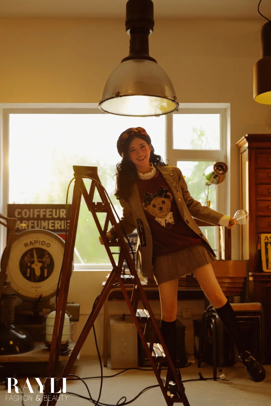 格纹百褶裙、格纹贝雷帽/均为teenie weenie,