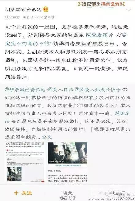 随后胡彦斌的工作室等都出来回应这是谣言,9个月前的图都拿出来了,谁说郑爽与胡彦斌订婚?仿佛给大家吃了一个大大大的定心丸(救命的)此话一出网友更是希望爽妹子和天宇在一起。