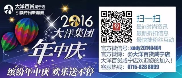 亲爱的顾客朋友们,如您发现在大洋购物后专柜未提供大洋百货购物发票或者有其他违规问题,请您告诉我们或者直接至5F贵宾厅反映,经核实确认后我们将双倍返还所购商品金额现金作为奖励。谢谢您的监督!监督电话:0715-8288899。咸宁大洋百货有限公司对相关活动有解释权。