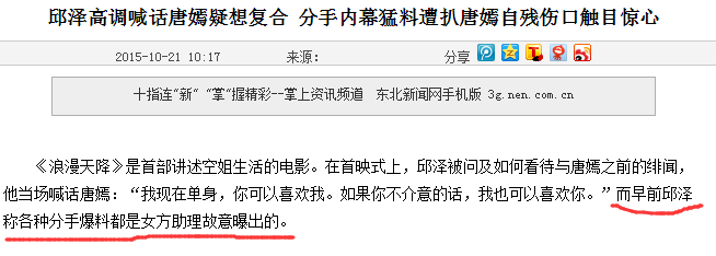 看出来了吧,邱泽、唐嫣分手后,男方仅仅做了一次回应,而女方则每有新的作品,或者缺乏关注度时,总会拿出所谓“情伤”这件事来为自己博同情、博眼球。