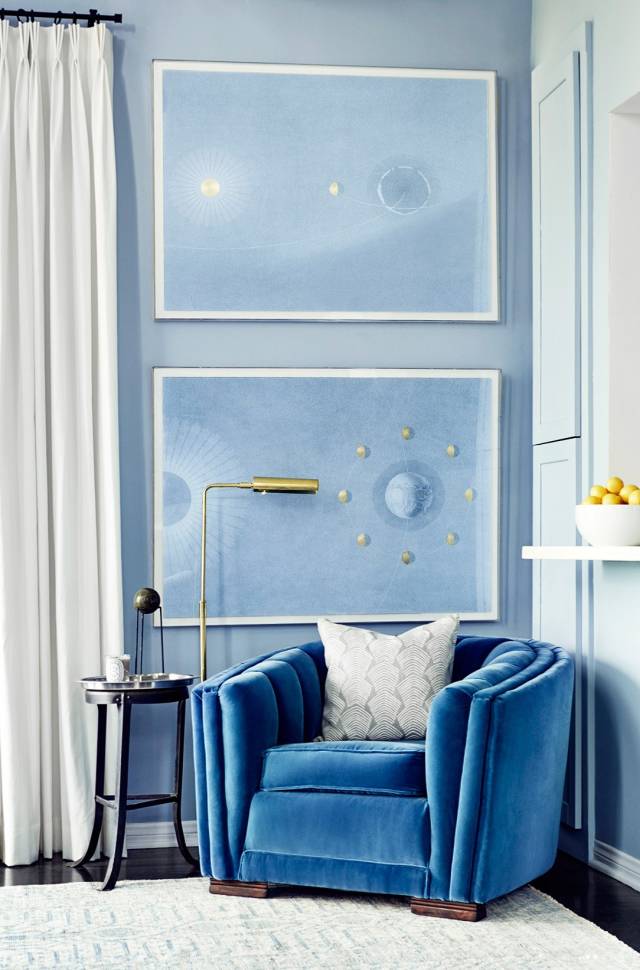 依旧是选择蓝色为主色调,不同的是这里的线条感更强,随之产生的艺术氛围也更浓烈。