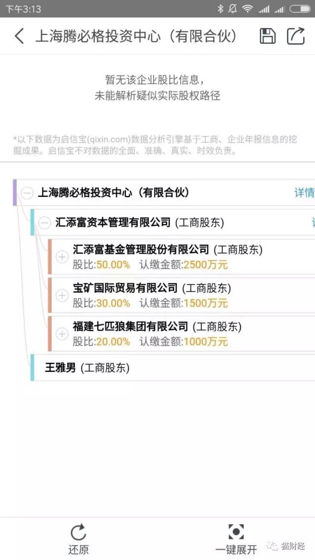 据启信宝上的公开资料显示,腾格尔,不,腾必格的股东成分为汇添富资本管理有限公司和王雅男。