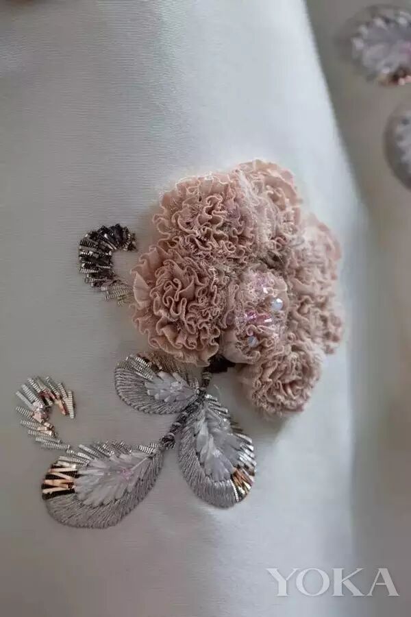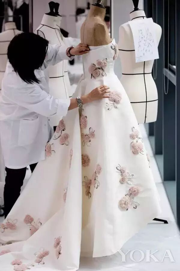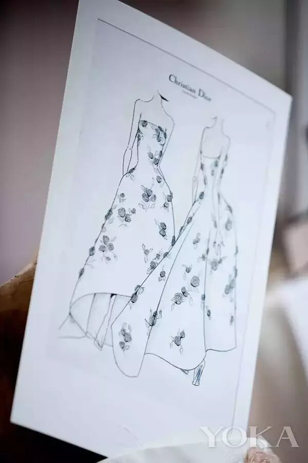 身上这件礼服是Dior迪奥高级订制,裙子上的玫瑰花都是由巴黎刺绣工坊的工匠们手工裁剪缝合的,每一朵形状都不一样,独一无二。