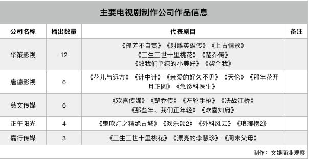 参与投资出品电视剧的数量,只是衡量一家电视剧公司实力的指标之一,制作爆款剧的能力、电视剧的话题度也是重要的衡量标准。
