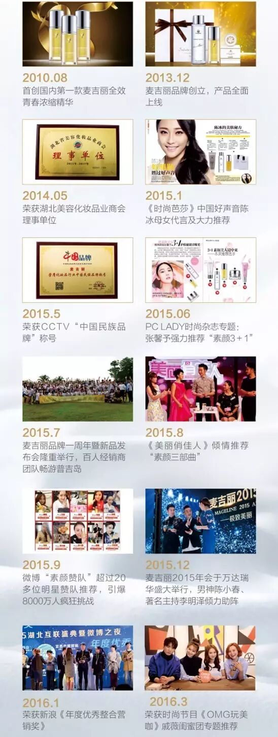 2016年麦吉丽继续阔步前行,斥资百万与《时尚芭莎》联合拍摄新品形象广告。6月和9月陆续签约当红小生郑恺与亚洲一线女星尹恩惠,成为中国新兴品牌中唯一成功启动双巨星代言的品牌。同时,双十一当天再创新高,成交量突破1.85亿,双十二当天突破5亿,年度总销售额突破30亿。