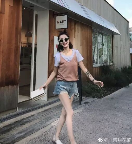 150元的Topshop无袖T恤配上不到200元的River Island印花短裤,简约时尚,大长腿令人羡慕。