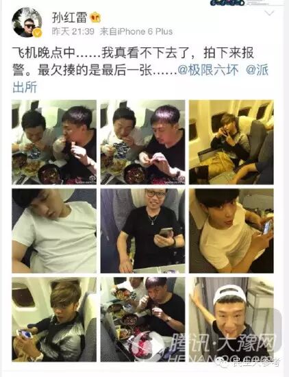 孙红雷26日在微博发布状态,表示飞机晚点。