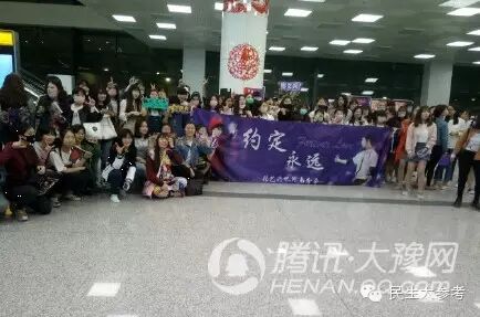 《极限挑战》六人组今天凌晨已经到郑州,图为现场接机的粉丝。