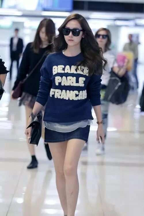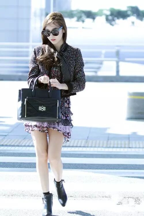 Jessica郑秀妍一套帅气干练迷彩装配上墨镜显酷劲十足,如此时髦帅气真是人见人爱。