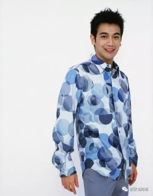 不得不说,张智尧从年轻的时候就可以说是走在时尚前沿的明星了。上身穿着的是浅蓝色的圆点渐变翻领衬衫,给予人一种强烈的空间灵动感。下身则是搭配闷青色的长裤,某种程度上这就是简约和复杂的有机搭配和组合。加上治愈系的笑容,这样简直就是男神的存在。