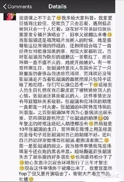 还有歌迷说收到范玮琪助理的私信,助理希望大家一起骂张韶涵。。。