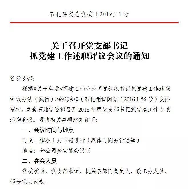 龙岩石油高度重视该项工作,将党支部书记抓党建工作述职评议作为推动基层党支部党建水平有效提升的一个强有力的措施来抓,精心部署,严格执行。在述职评议会议召开前半个月下发通知,明确述职评议的内容和要求。