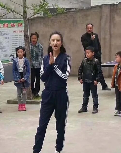 看到素颜照的她,大家可能会大吃一惊,就真的是乡村老阿姨的带队现场吗?穿的一套深色运动衣,然后非常开心的对着镜头打手势。这个衣服穿在她身上,整个人的上身效果也是非常接地气!