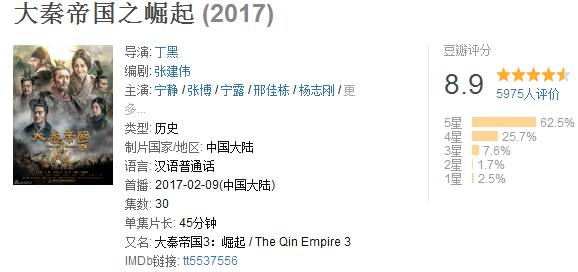 之所以对这部剧这么期待,就是因为《大秦帝国》系列自第一部《裂变》起一直被称为“国产剧之光”,是中国难得一见的好剧。
