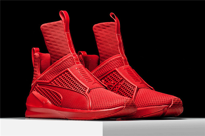 尤其是打造的全新 Fenty Trainer 鞋款,以网格材料构成高筒鞋身,配以无鞋带、鞋面绑带 Logo、鞋跟处联名图案等细节设计,体现了个人独有的前卫时尚理念。
