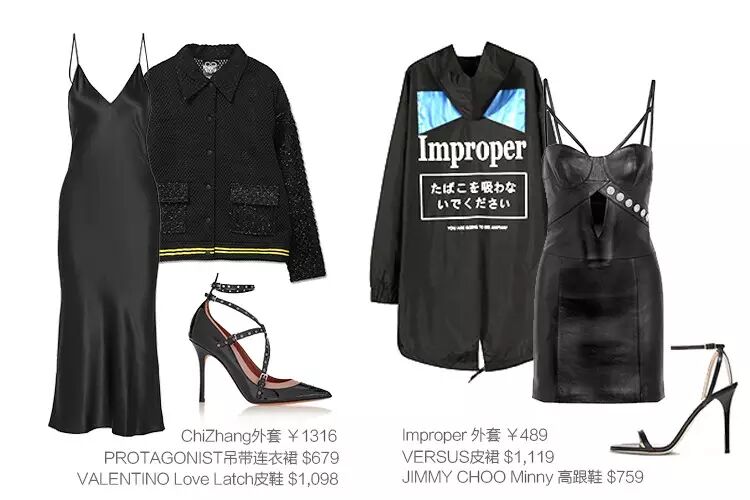 ► Riri 爱穿偏性感,特别爱穿Deep V 的 吊带 one piece。Riri 小麦色的皮肤,穿黑色也不会让她看起来死板,反而性感逼人,再搭配掐脖项链和黑色的妆容,像是从黑暗中走出来的女王大人。外披Oversize的外套更加酷帅哦。