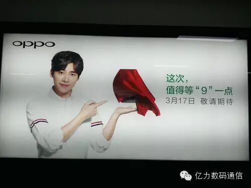 有网友发现,OPPO已经在各大地铁站中投放OPPO R9的宣传广告,从中我们可以发现,该机将于3月17日正式亮相,并且由小鲜肉李峰易代言。