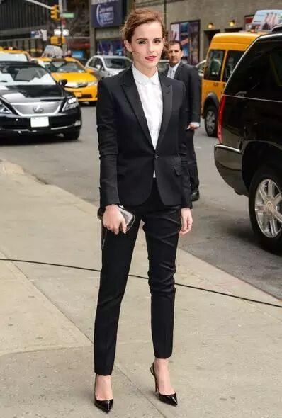 现在Emma Watson对造型穿搭有自己的独到见解,她的时尚品味都是大家有目共睹并大為讚赏的。把帅气穿上身,Saint Laurent笔挺的西装,搭上尖头高跟鞋以及小巧的手提包,衬出Emma Watson的女人味。